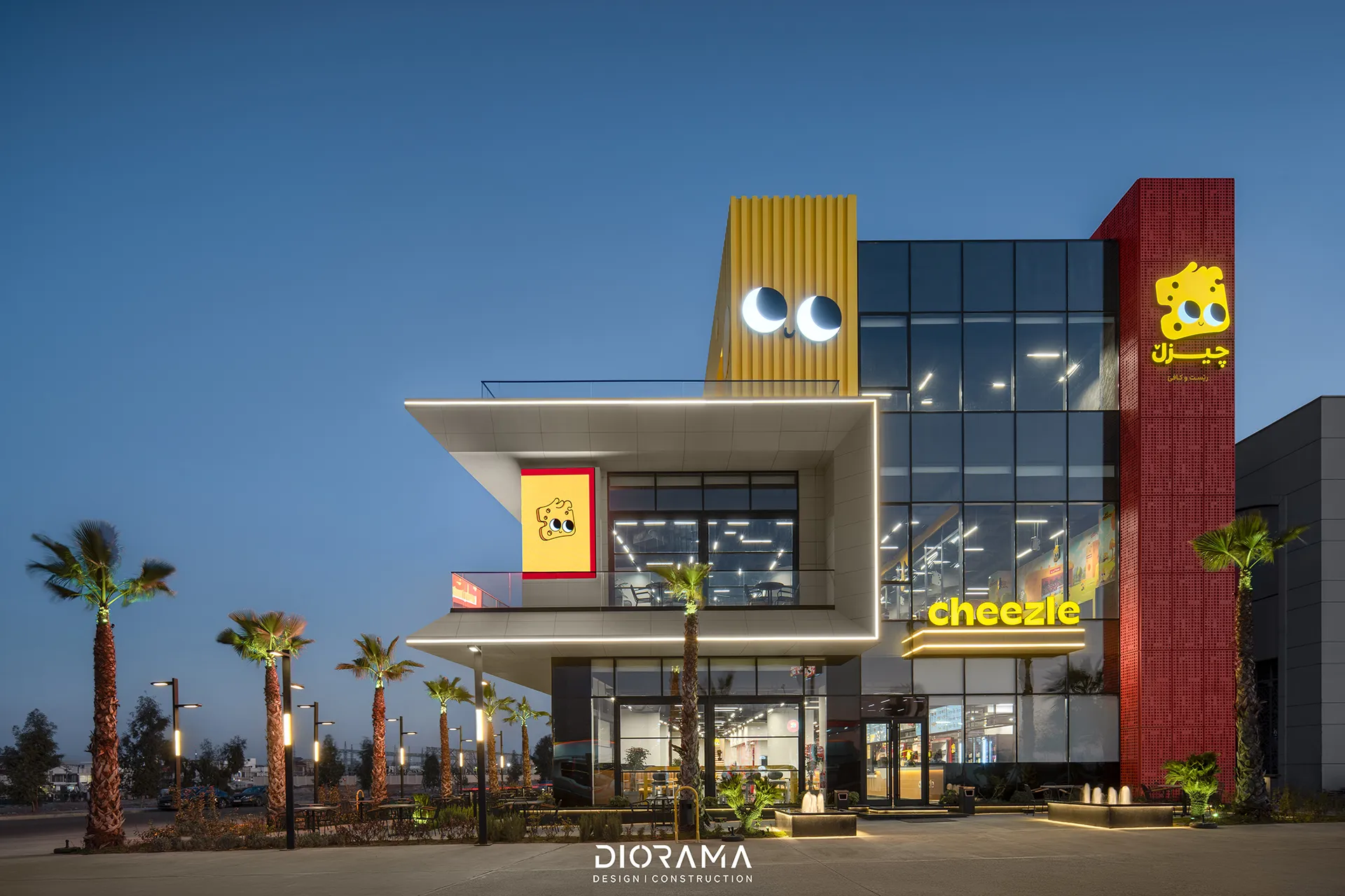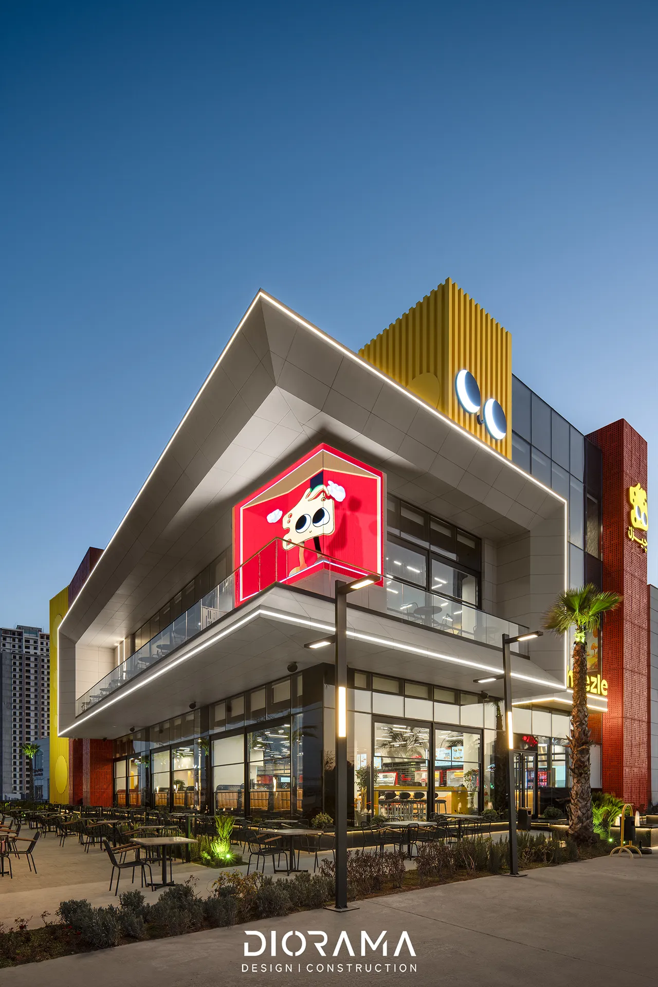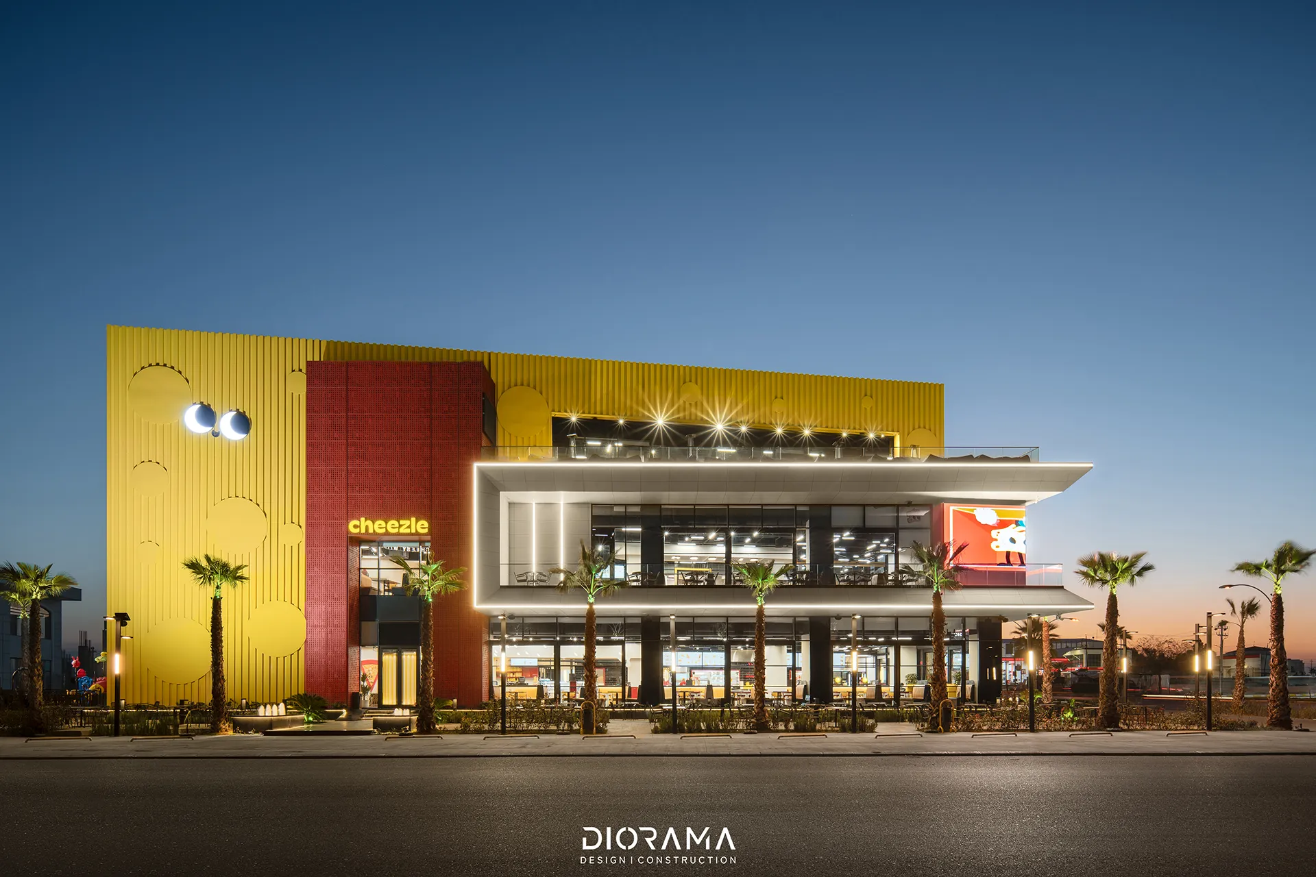 Diorama’s design integrates eye-catching elements with a sleek, streamlined interior, ensuring a dynamic atmosphere that enhances customer engagement. The space is optimized for both quick service and comfort, reflecting the fast-paced nature of its offerings while providing a welcoming environment. Cheezle Fast Food stands out as a lively addition to Erbil's culinary scene, offering both aesthetic appeal and operational efficiency.