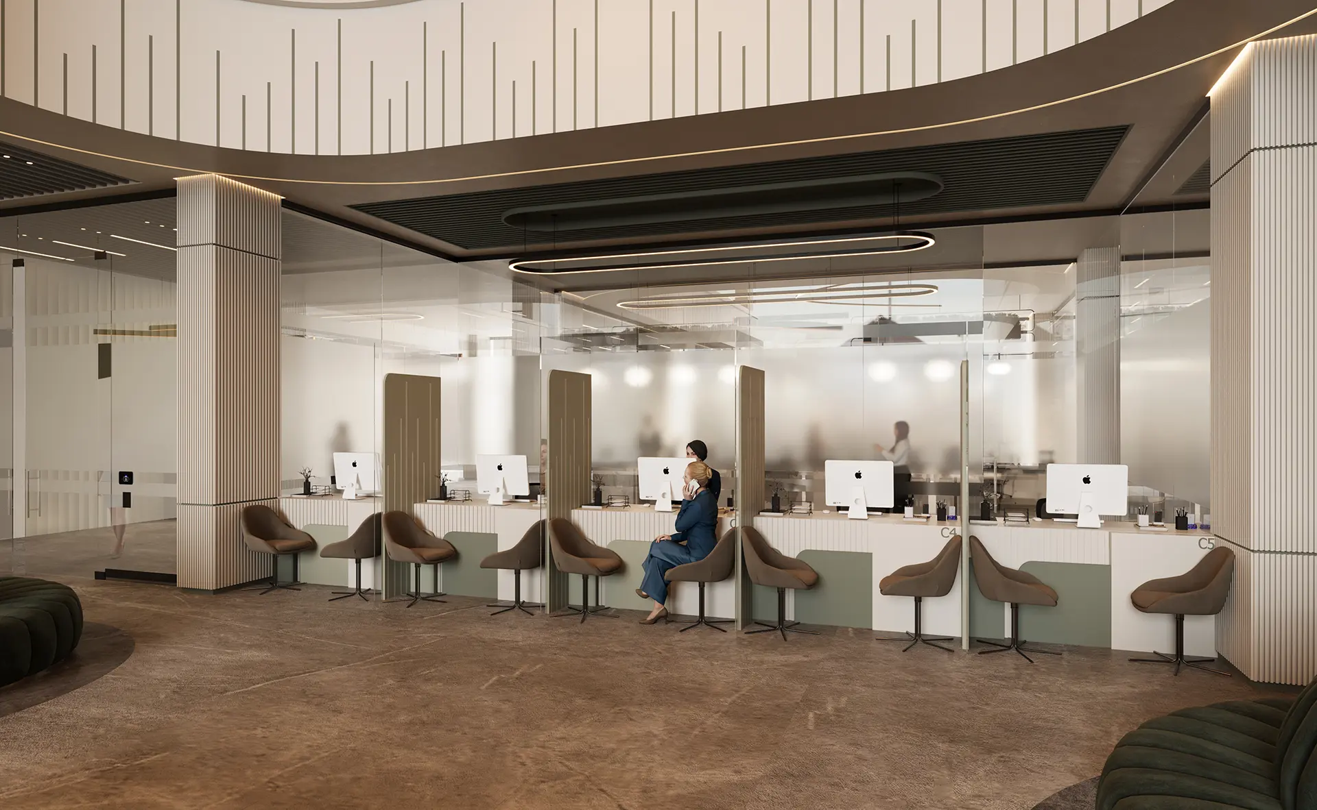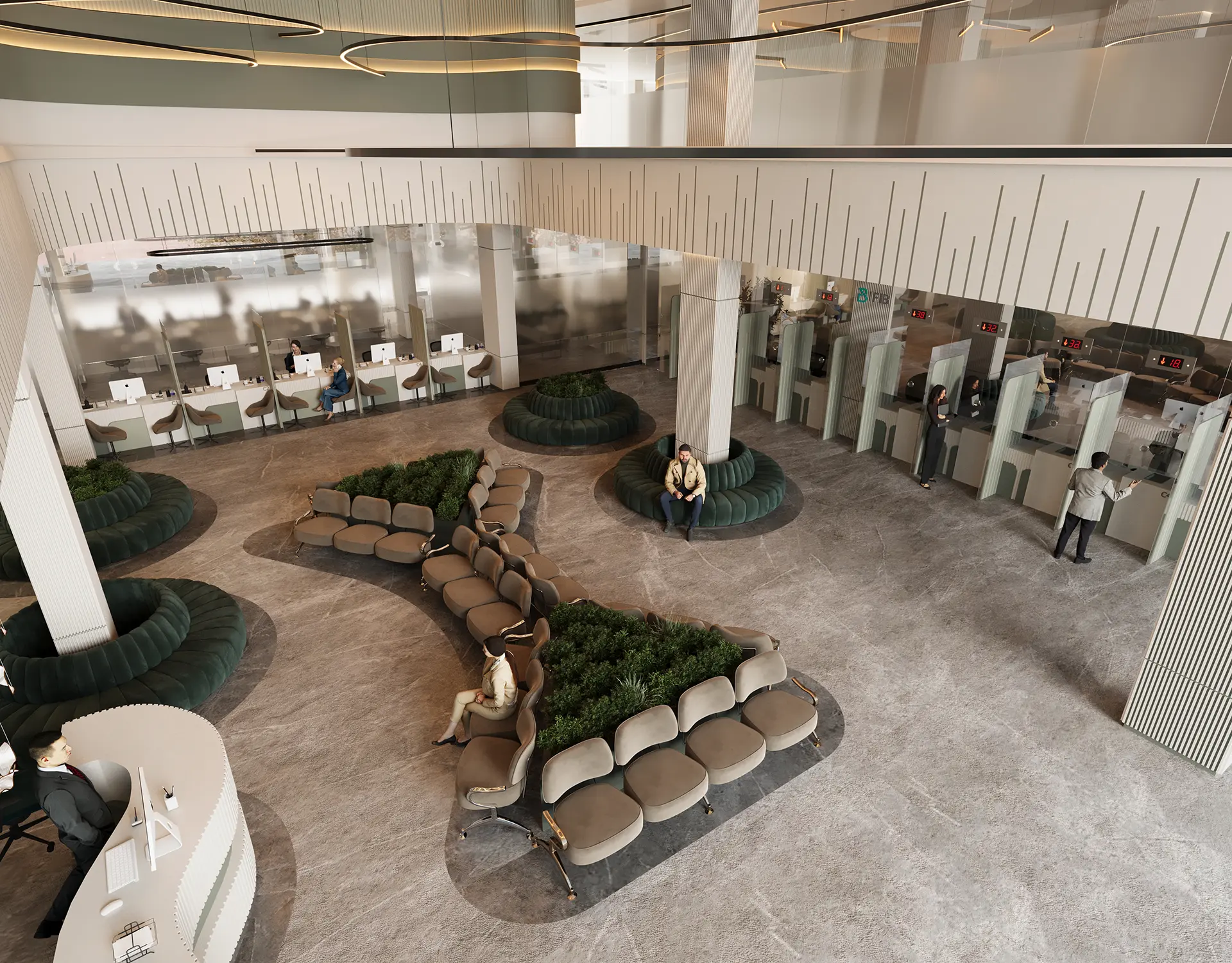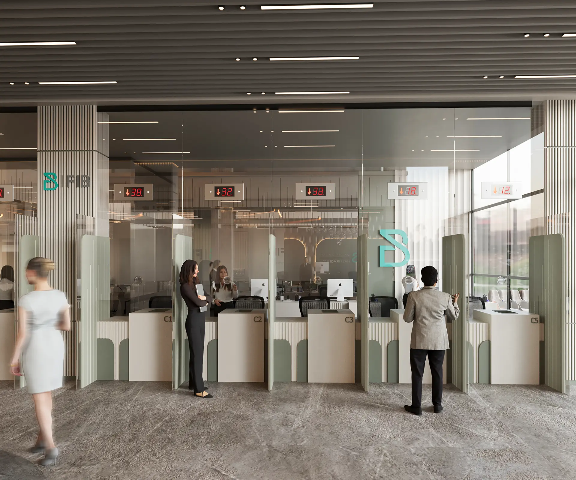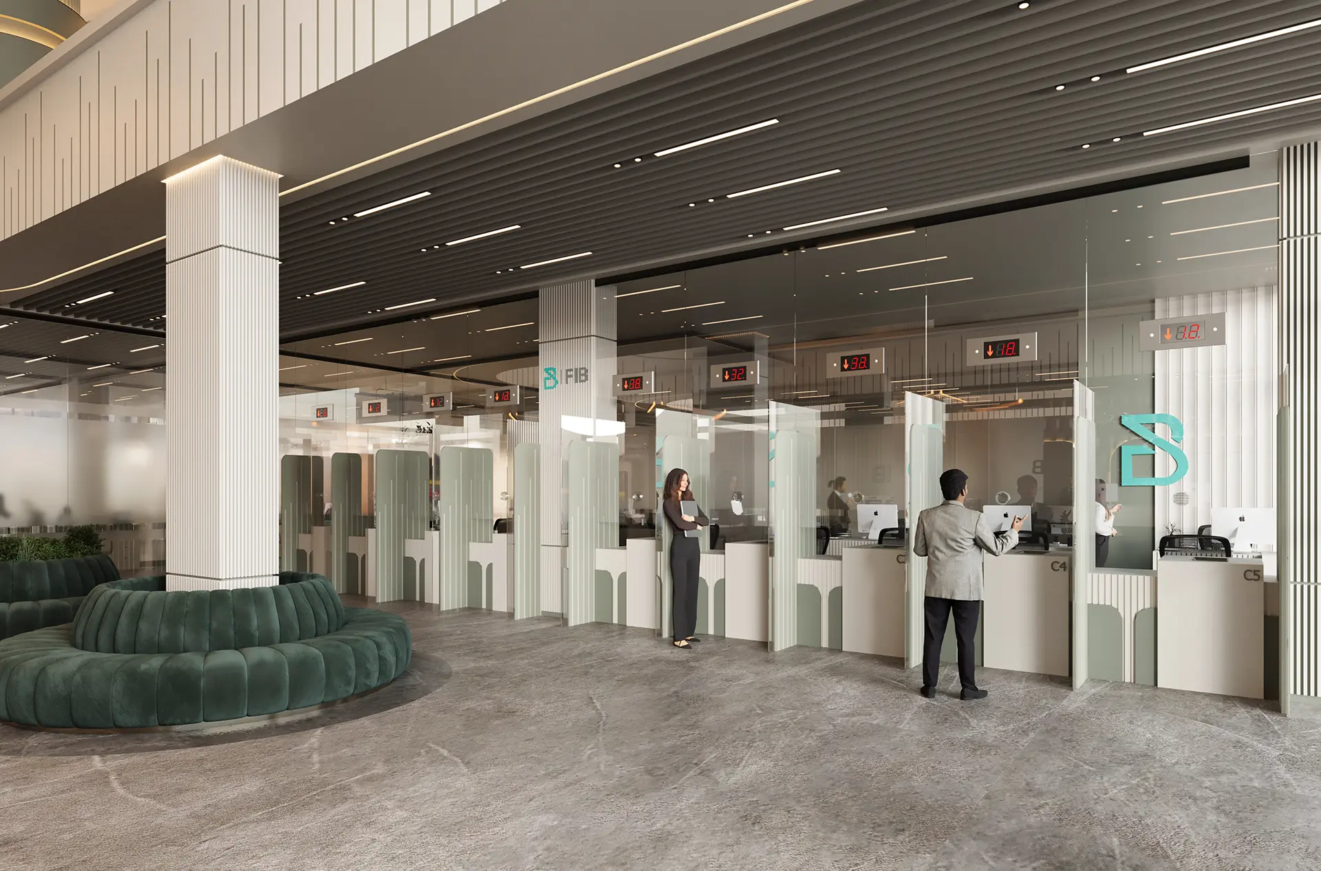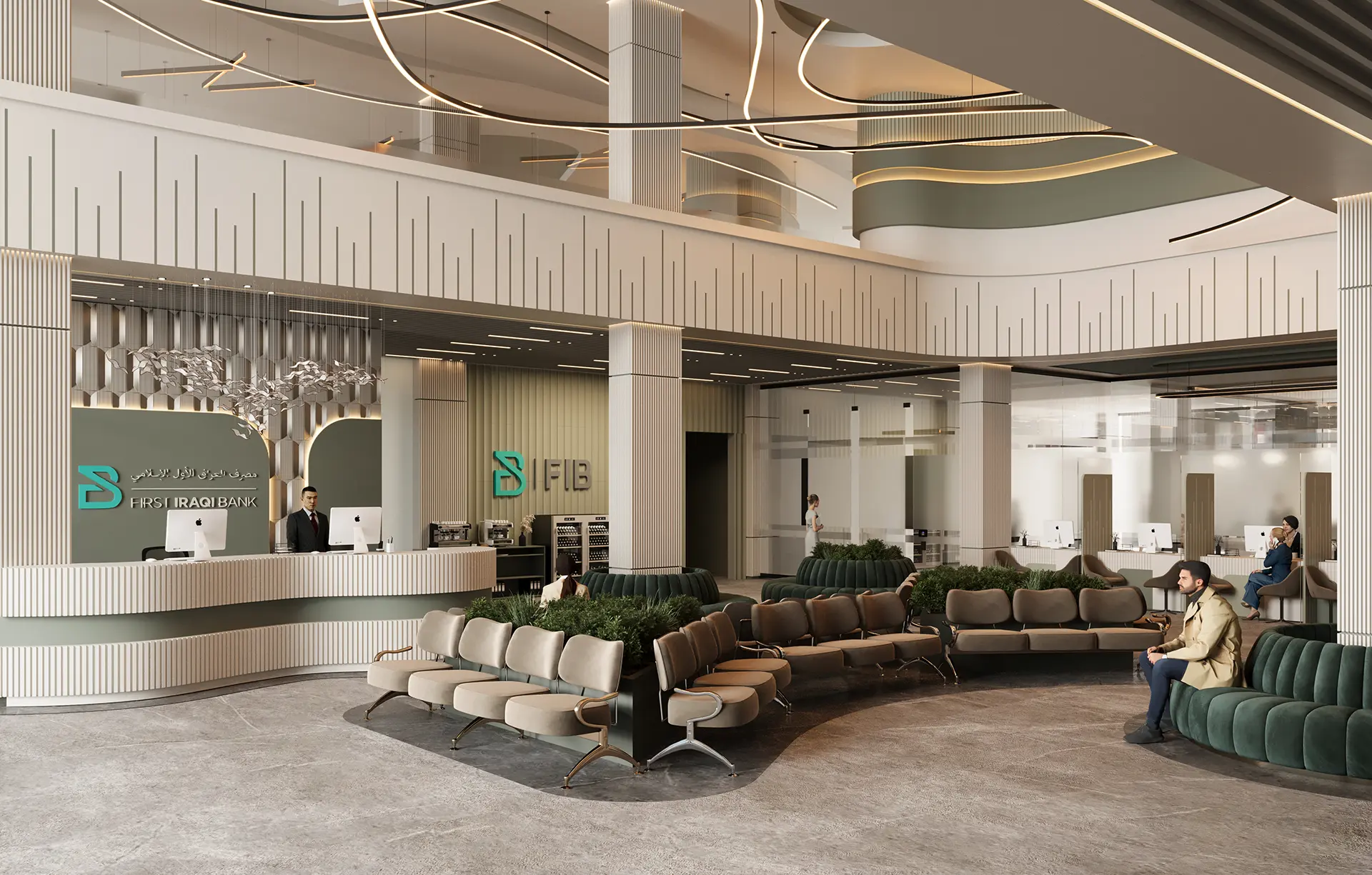 The exterior design of the bank presents a modern and inviting facade, while the interior spaces are meticulously planned to enhance the banking experience, featuring high-quality materials, innovative lighting, and a layout that promotes both efficiency and comfort.