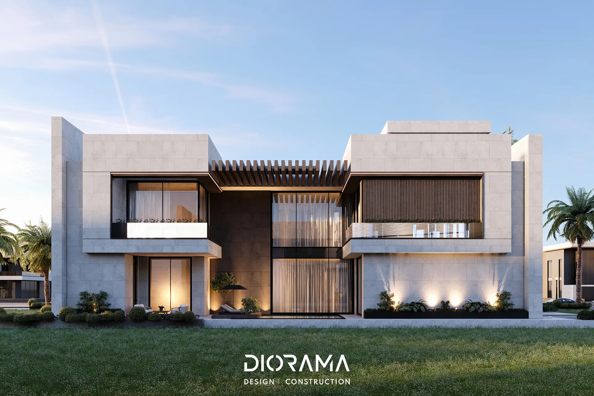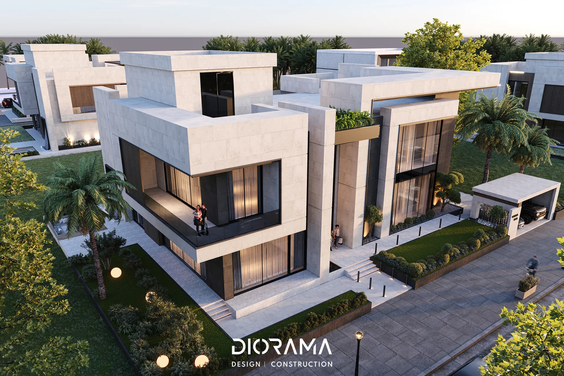 The Future City Modern House in Erbil, with a sprawling area of 1000 sqm, exemplifies contemporary residential design at its finest. Designed by Diorama, both the interior and exterior of this stunning home reflect a seamless blend of elegance and modernity. The exterior features a sleek façade with clean lines and large glass panels, creating a striking visual impact while ensuring abundant natural light.