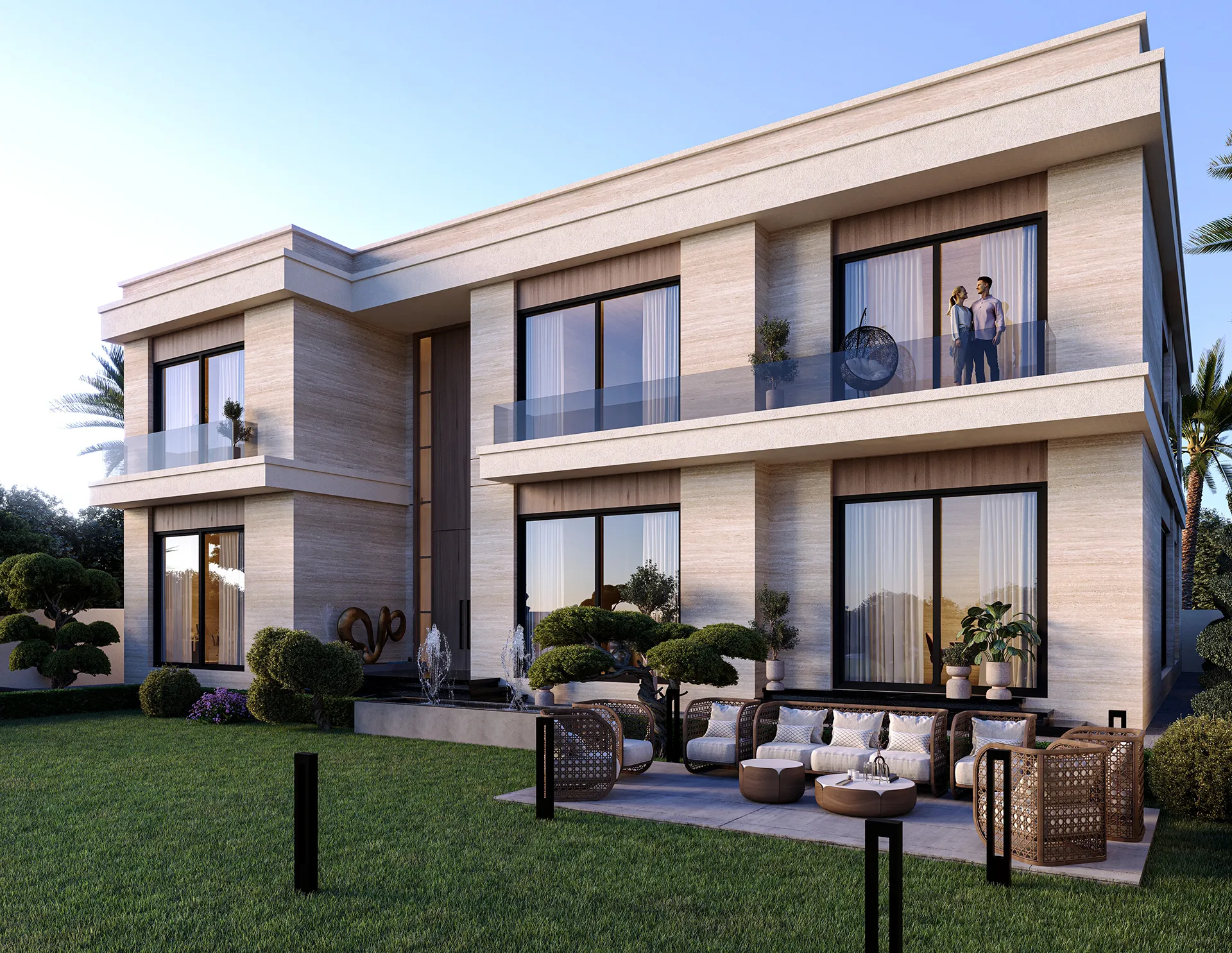 Inside, the villa's interior design complements its exterior with opulent finishes, intricate detailing, and a harmonious flow of spaces that reflect both comfort and refinement. Each room is meticulously crafted to offer a perfect balance of aesthetics and functionality, making the villa a true masterpiece in luxury living.