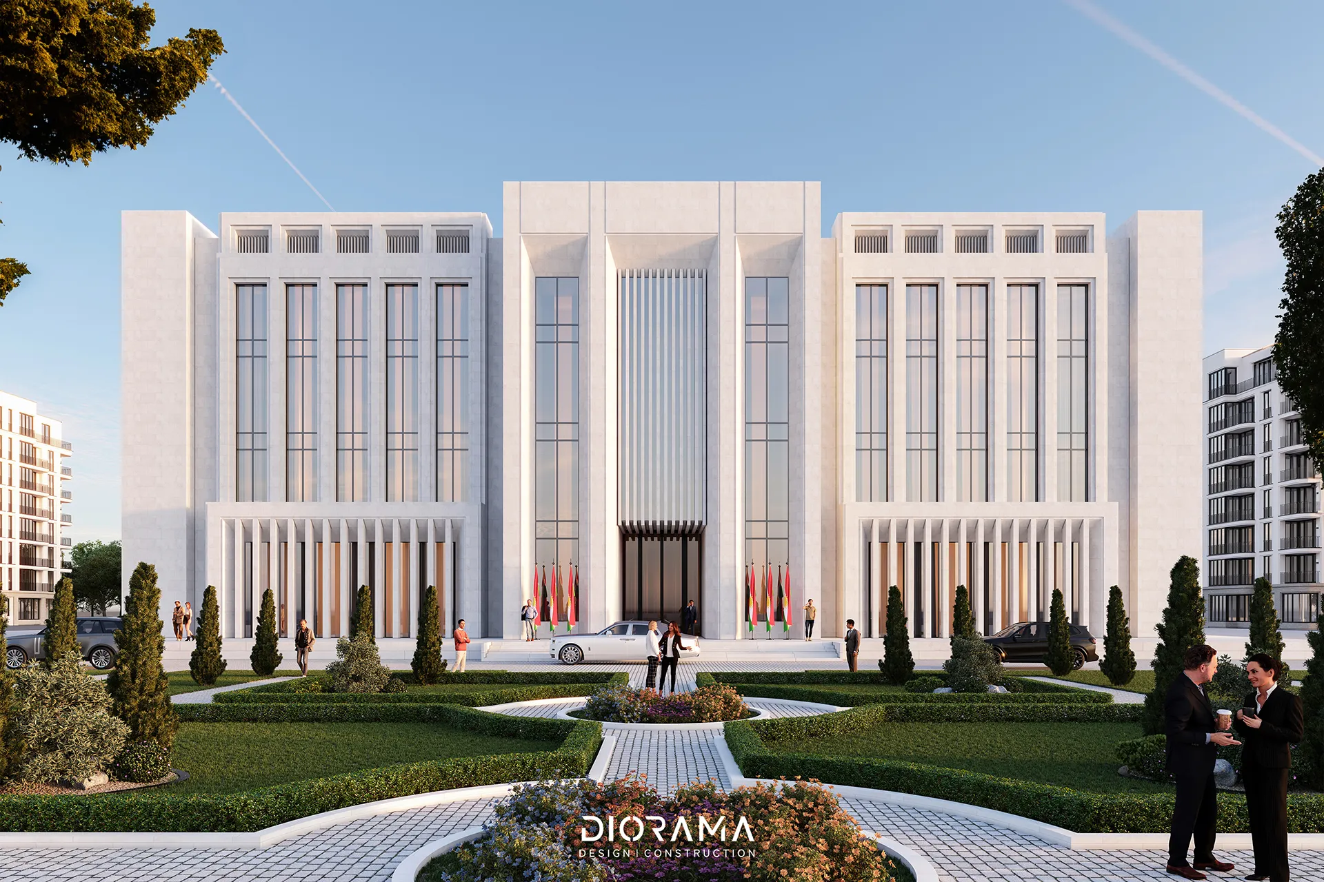 The governmental office in Erbil, designed by Diorama, showcases a refined blend of functionality and aesthetics, aligning with its role in the governmental category. Spanning 1,670 square meters, the building's exterior design exudes a modern yet authoritative presence, marked by clean lines and a dignified facade.