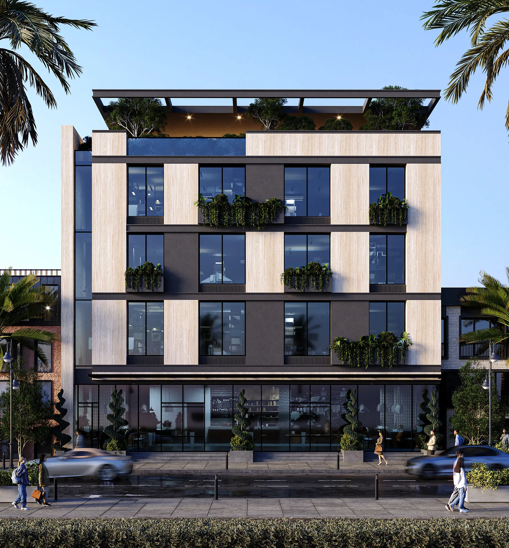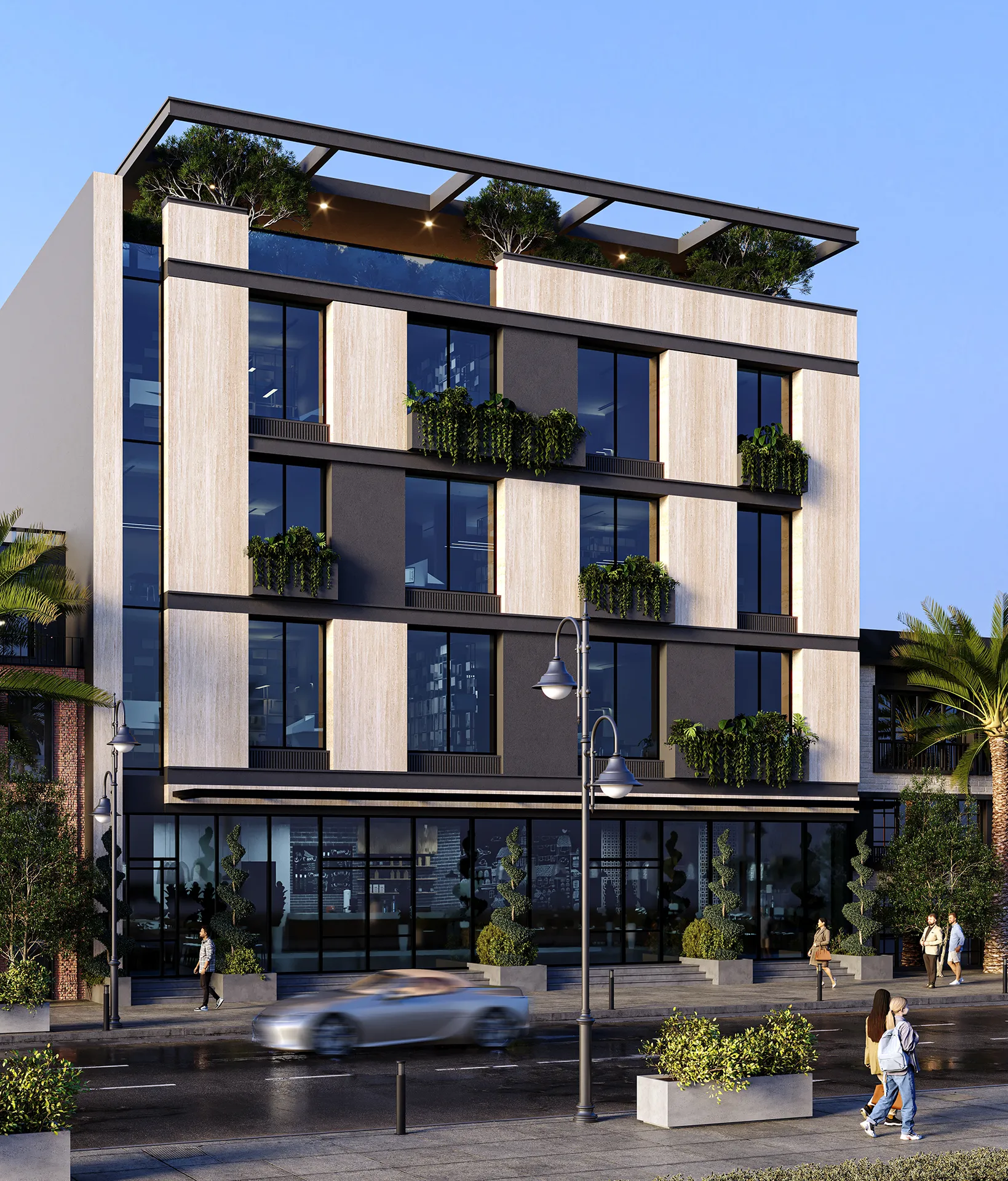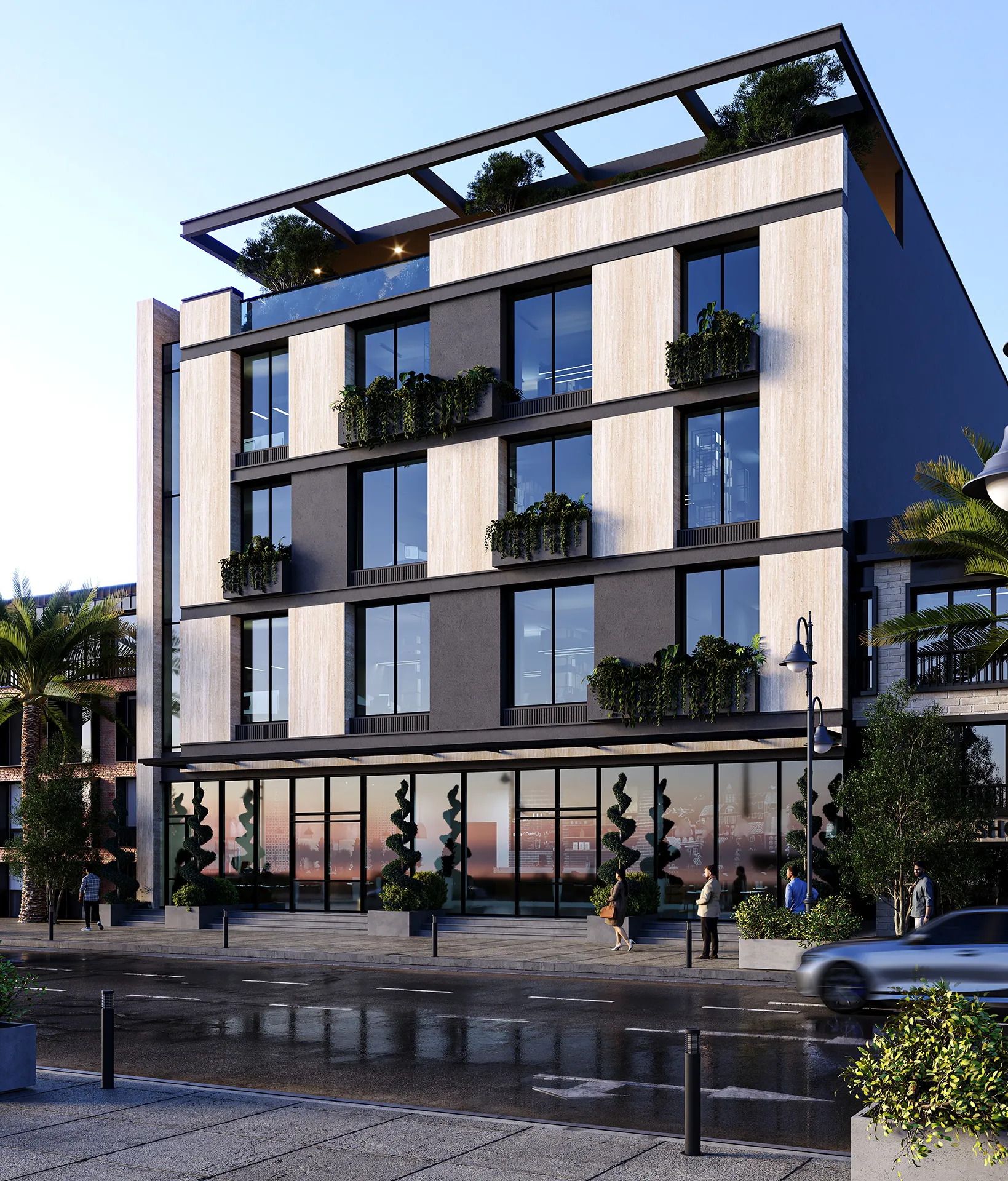 Inside, the building is planned to maximize efficiency and adaptability, offering flexible spaces suitable for a variety of commercial functions. Thoughtful consideration is given to circulation, natural lighting, and user comfort, creating an environment that supports productivity and engagement. The project reflects DIORAMA’s commitment to delivering well-crafted commercial spaces that balance aesthetic quality with practical performance.