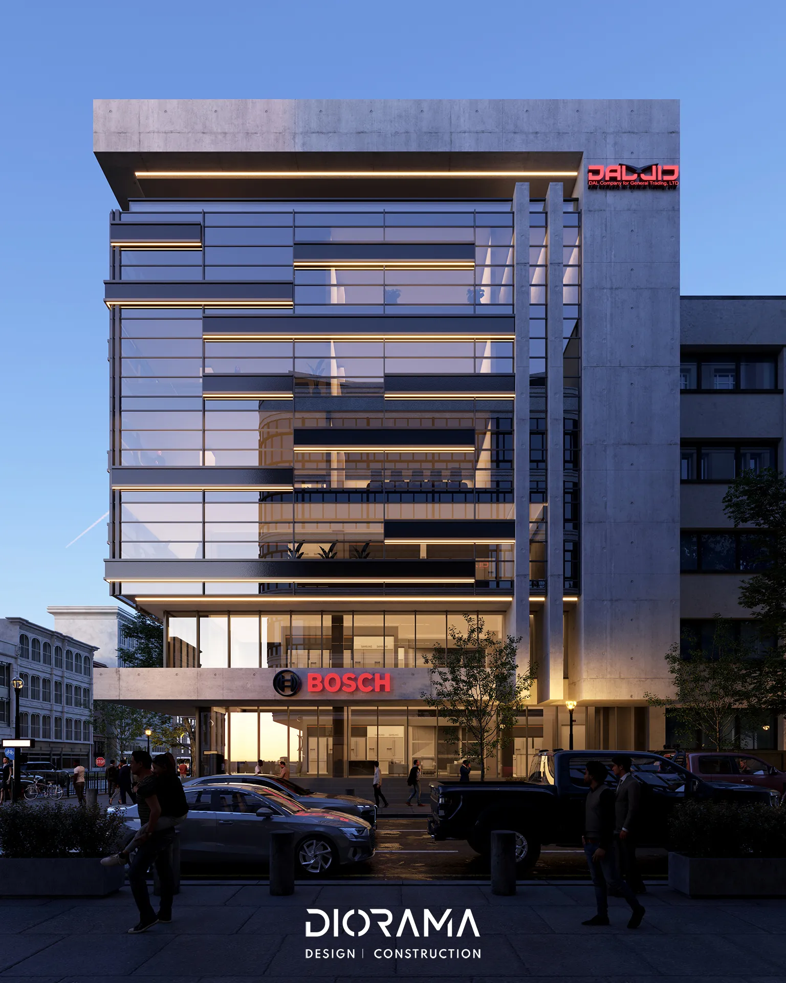 Inside, Diorama's design approach emphasizes a balance between aesthetics and utility, with a layout that promotes both comfort and productivity. High-quality finishes, strategic lighting, and a thoughtfully curated color palette enhance the building's overall appeal, making it a standout addition to the commercial landscape of Erbil.